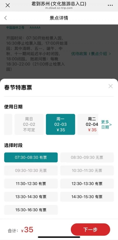 雖然蘇州博物館已經(jīng)約滿,不過,備受游客喜愛的拙政園,2月3日、2月4日還有余票。