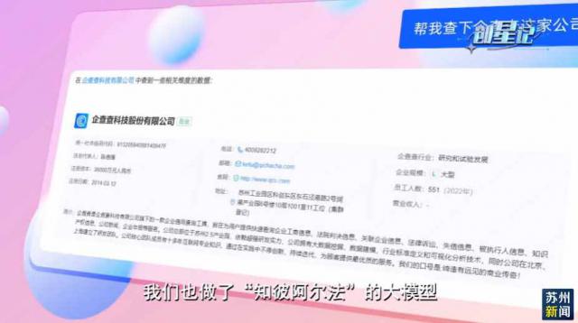 系列報(bào)道“創(chuàng)星記”,一起走進(jìn)中國互聯(lián)網(wǎng)百強(qiáng)、國內(nèi)領(lǐng)先的企業(yè)信息查詢平臺--企查查。 從2014年到2025年,“企查查”建立起覆蓋國內(nèi)近3.5億家市場主體的數(shù)據(jù)庫,注冊用戶量上億。 企查查聯(lián)合創(chuàng)始人施陽介紹,做了企業(yè)的“企查分”、“科創(chuàng)分”,超過三百個(gè)維度的企業(yè)信息。 平臺累計(jì)查詢次數(shù)超萬億次,匯集國內(nèi)上百條產(chǎn)業(yè)鏈、6000個(gè)細(xì)分領(lǐng)域商業(yè)信息。 春節(jié)后,一篇《你查我?我還查你呢!》的新聞報(bào)道引發(fā)關(guān)注。求職市場如何避免“入職即踩坑”?以“00”后為代表的青年求職者正在用新方式破解這一難題,反向背調(diào)企業(yè)!通過企查查等數(shù)字化工具,快速篩查企業(yè)風(fēng)險(xiǎn),掌握主動(dòng)權(quán)。 施陽表示,非常高興能幫到很多求職者,去面試的地點(diǎn)和他公司的注冊地是不是一致的,企業(yè)有沒有勞動(dòng)糾紛,可以幫助求職者規(guī)避這種陷阱。 作為一款專業(yè)的企業(yè)信息查詢工具,“企查查”依托大數(shù)據(jù)+AI技術(shù),整合各類可信商業(yè)數(shù)據(jù),為客戶提供信息查詢服務(wù)。同時(shí),企業(yè)還為金融、制造業(yè)等企業(yè)級用戶提供底層數(shù)據(jù)賦能。 施陽介紹,2014年國家剛剛開始把企業(yè)的注冊信息公開公示出來,用互聯(lián)網(wǎng)比較多的人都不知道,普通老百姓更不知道,所以解決的就是用戶查詢企業(yè)信用信息的痛點(diǎn)。以企業(yè)注冊信息為核心,包含司法相關(guān)信息、知識產(chǎn)權(quán)相關(guān)信息、生產(chǎn)經(jīng)營活動(dòng),哪些是民營企業(yè)?哪些是國有企業(yè)?以及這些企業(yè)優(yōu)質(zhì)的程度,把這些冰冷的數(shù)據(jù)變成有活力的。 如何把龐雜的信息數(shù)據(jù)更直觀地展現(xiàn)在用戶面前,是擺在“企查查”面前的又一道難題。苦思冥想“答題”之際,“打分”成了創(chuàng)新的最優(yōu)解。 施陽介紹,企業(yè)的“科創(chuàng)分”,大家可以快速判斷一個(gè)企業(yè)經(jīng)營的信用情況怎么樣、研發(fā)實(shí)力怎么樣,“B端”包括銀行,用這個(gè)做金融的風(fēng)控,還有合規(guī)性,“科創(chuàng)分”篩選出非常多優(yōu)質(zhì)客戶。 為了進(jìn)一步降低工具的使用門檻,“企查查”還玩起了企業(yè)“AI讀心術(shù)”。 施陽介紹,也做了自己的“知彼阿爾法”的大模型,用這種對話式的一步步精確地做篩選,不斷地提問,不斷地回答,通過AIGC從后臺把企業(yè)信息整理好,很方便地使用信息。 如今,企查查的創(chuàng)新之路還遠(yuǎn)未停止,將為境內(nèi)外企業(yè)商業(yè)合作構(gòu)建信任“橋梁”。 施陽表示,現(xiàn)在已經(jīng)在新加坡設(shè)立了子公司,為更多企業(yè)在海外提供信用信息的服務(wù)。國際企業(yè)不斷投資中國,在中國發(fā)展,他們同樣也在提供企業(yè)信用信息的服務(wù),把“企查查”做成一個(gè)世界級的商查的領(lǐng)軍企業(yè),這是非常可能的。