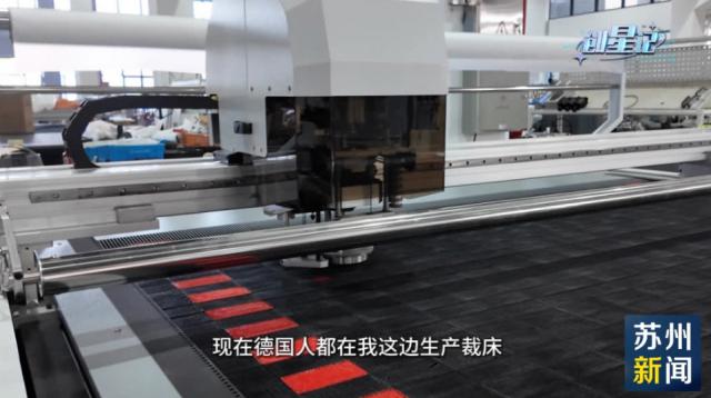 “現在,德國人都在我這邊生產裁床。衣服都要裁,原來手工拿把電剪刀,現在你把圖紙給我,圖紙一輸入,布一鋪,(就能)全自動裁,還能很高精度,達到0.1毫米的精度去裁。”周建良說。