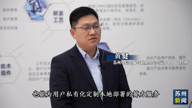 蘇州電信集成與軟研中心(云中臺)總經理黃健介紹,蘇州電信算力資源豐富、分布廣形式多。一方面有天翼云的長三角區域中心,能夠給客戶提供公有云、專屬云多種豐富的算力服務;第二個依托吳江的長三角算力調度中心,能為用戶私有化定制本地部署的算力服務。從算力專網的部署到模型的調參,到軟件的適配、安全的服務,能夠提供一站式的服務。
