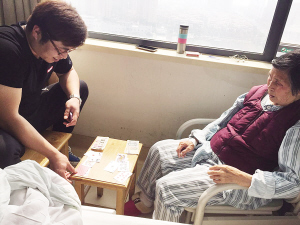 今年79歲的外婆,因肺癌骨轉移而住進了醫院,一度出現生命危險,幸運的是搶救及時緩過來了,這讓王佳也稍微松了口氣。在照顧外婆期間,有一段時間,王佳要在市中醫醫院和市一院之間來回奔波。外婆患病后長期臥床,在王佳的悉心照料下,不僅一日三餐都按時,王佳還耐心給外婆剪指甲、敲背、捶腿、洗腳等等,不嫌苦,不嫌累。因為疾病的折磨,外婆的脾氣變得有些古怪,他有時還不得不忍受老人的責罵。王佳始終用真心去照顧外婆,并常在外婆治療間隙陪外婆打牌解悶。