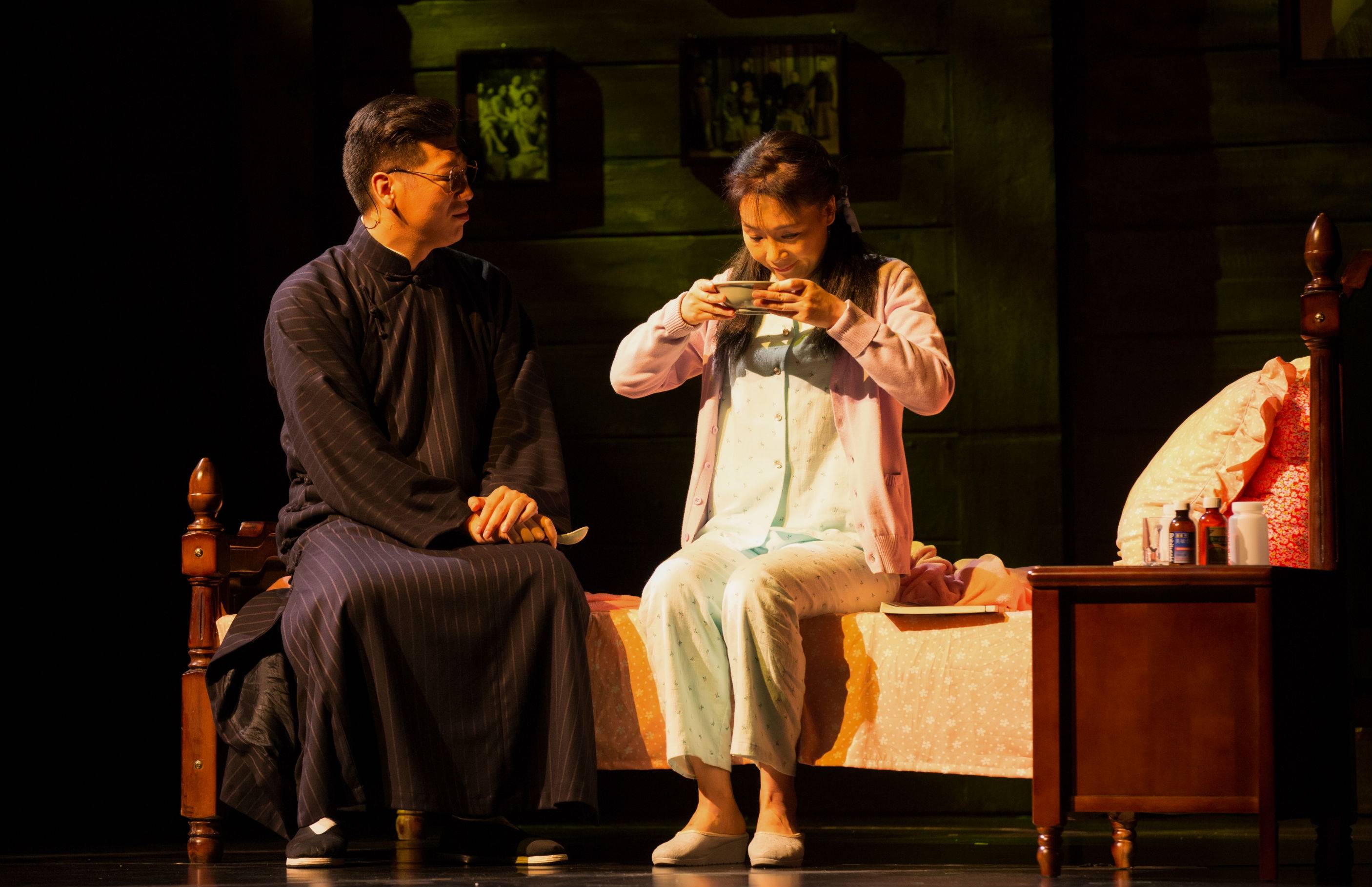 “滴答滴答……,每一秒都跳動在心上;撲通撲通……,每一下都幾乎跳出心房。守望,親人/同事的平安,堅持,中醫人的夢想……”白天,黑夜輪轉,燈光漸起。舞臺上,一頭短發且虛弱的屠呦呦與死神檫肩而過,她脫下病服走出試藥實驗室向院長和同事匯報:人體試驗也成功了!青蒿素真的成功了!這一刻,油然而生的民族自豪感彌漫了整個劇場,無形之中的“正能量”讓每一位遠道而來的觀眾,享受了一次精神上的洗禮。
