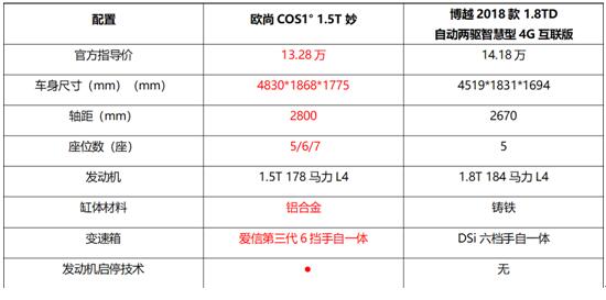 動力方面,歐尚COS1°搭載了1.5T發動機+愛信6AT變速箱的組合,發動機更經濟實用,適合家用。吉利博越動力被變速箱過濾后,后期的表現缺乏爆發感,且油耗偏高,作為家用SUV來說性價比不高。