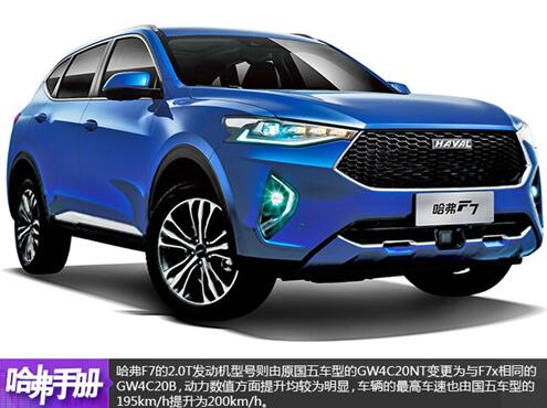 哈弗F7的2.0T發動機型號則由原國五車型的GW4C20NT變更為GW4C20B,動力方面最大功率和峰值扭矩的數值提升均較為明顯,車輛的最高車速也由國五車型的195km/h提升為200km/h。具體來說,GW4C20B與GW4C20NT相比可視為全新的發動機,其動力性明顯優于GW4C20NT,主要是應用了來自聯合電子的350bar電噴系統;采用全新開發的燃燒系統,結合集成排氣歧管、全新自主電控雙流道增壓器、熱管理模塊等。