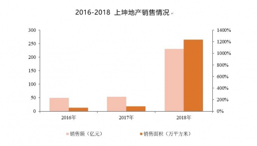 2018年,上坤地產(chǎn)的銷售額突破200億大關(guān),是迅猛發(fā)展的一年,銷售額及銷售面積分別為230億元、265萬㎡,分別同比增長325.9%和1372.2%。隨著上坤地產(chǎn)后期項(xiàng)目的持續(xù)入市,未來幾年上坤將保持長期增長態(tài)勢。