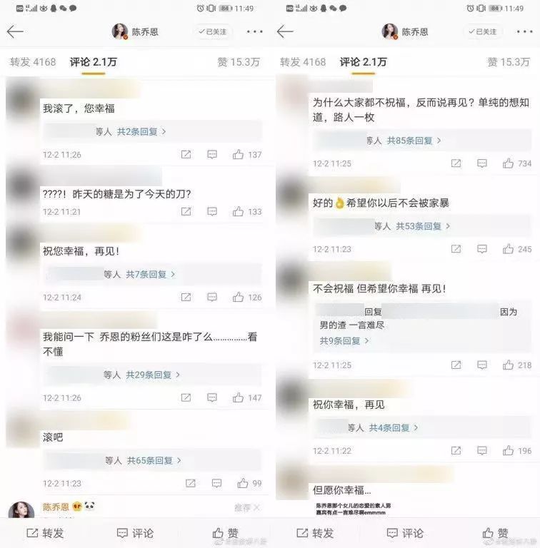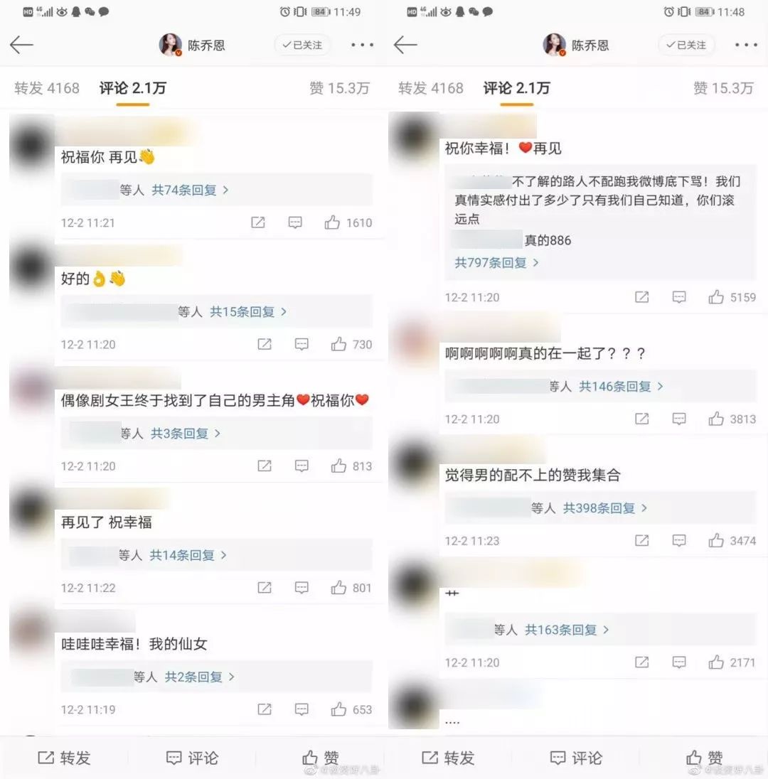 眾多陳喬恩的鐵粉紛紛將頭像換成黑色,并宣布脫粉,清一色祝你幸福,但是再見(jiàn)了的口氣。