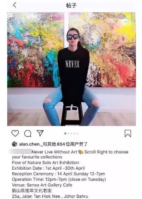 單親媽媽常常PO一些畫展照,網(wǎng)友稱背后的畫是艾倫的作品。