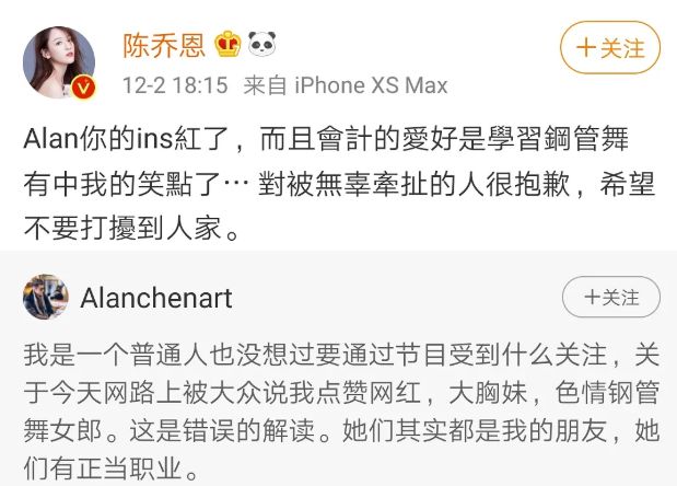 隨后陳喬恩也轉發表示都是誤會。看起來,陳喬恩是來真的了。