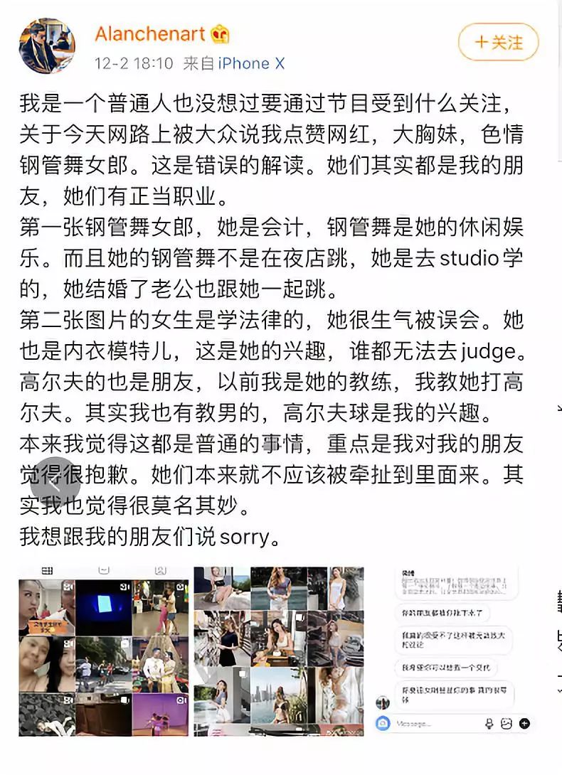 公布戀情7個小時之后,艾倫終于回應了,他稱大家對他都是誤會,關注的美女網紅都是真正的朋友。
