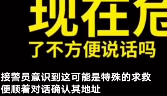 接警員提示:遇到類似不方便透露太多信息的情況可適當使用一些“暗語”——即讓接警員能夠聽懂的一些暗示性信息,比如女孩在聽到“這里是110接警中心”后的反饋:“我知道”、“我知道”、“你們給我送點東西”、“我主要是出不去”……