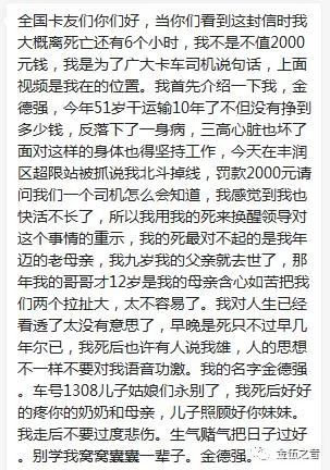 大車司機(jī)一天大概能掙200—400元錢,剛一出車就被罰款2000元,作為三個孩子的父親、又肩負(fù)養(yǎng)老責(zé)任,金德強(qiáng)一時無法接受。