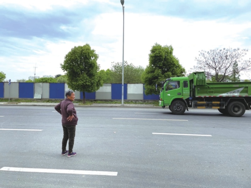 前天上午,記者來到惠宇華庭實地走訪。記者發現,張燕反映的情況確實存在。從惠宇華庭南門出來,就是洋涇角路江宇路以東路段。周邊正在進行地下管廊建設和快速路的施工,不時有大型土方車、運貨卡車經過,車況十分復雜。這一路段沒有任何斑馬線或減速慢行的標志。