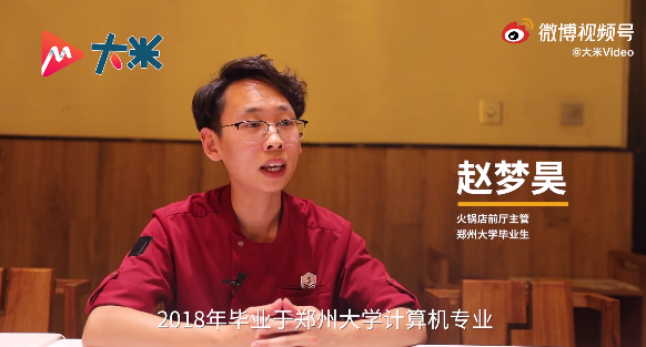 據悉,90后小伙趙夢昊畢業于鄭州大學計算機專業,畢業后選擇當服務員。不過,在得知兒子當服務員的消息時,他的父親很失望,覺得兒子的書白讀了,甚至“威脅”兒子:再干下去,回家就打斷腿!但趙夢昊覺得360行行行出狀元,服務員并不低人一等。