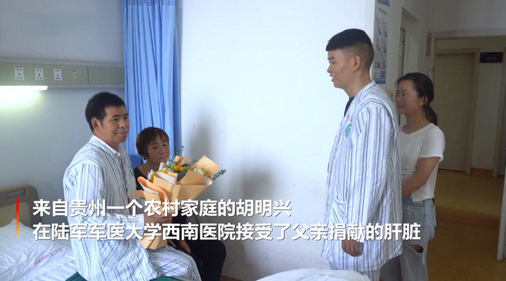 據悉,日前,來自貴州金沙一個普通的農村家庭的25歲胡明興在陸軍軍醫大學西南醫院接受了父親捐獻的肝臟,重獲新生。