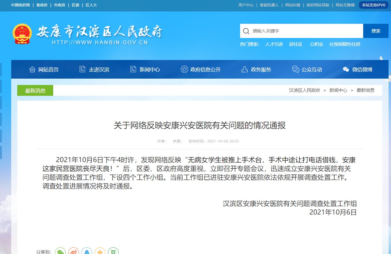 10月6日,有網(wǎng)友發(fā)文稱:無病女學(xué)生被推上手術(shù)臺(tái),手術(shù)中途讓打電話借錢,安康這家民營醫(yī)院喪盡天良!