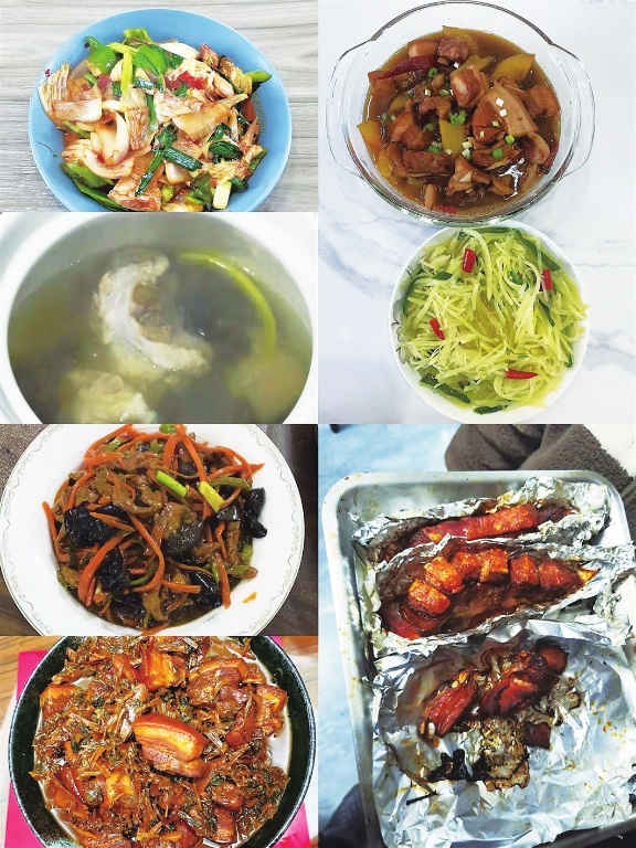 PK完美照,熱鬧勁還在延續。在熱心群友的建議下,大家紛紛用同樣的食材制作出了各具創意的菜肴,從前天到昨天,從魚香肉絲、脆皮五花肉、豬肉燉粉條到川香回鍋肉,業主們邊燒邊吃邊曬,交流分享制作經驗,享受著別樣的鄰里溫情;志愿者服務團隊還為大家組織起了廚藝有獎大比拼活動。“大家出金點子,參與這樣的線上小活動,以這樣的方式抗疫有心又有趣。”居民們紛紛表示。