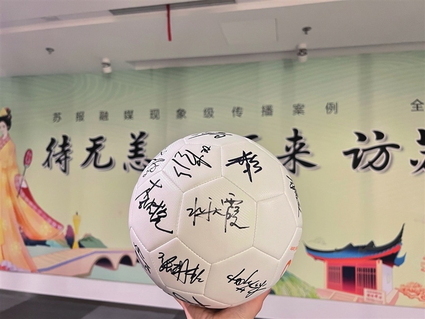 本報訊(記者凌欣煒)風雨彩虹,又見鏗鏘玫瑰。昨天,正在休假中的中國女足隊員李夢雯,通過蘇報集團媒體平臺發(fā)布視頻,向守護蘇州發(fā)展的各行各業(yè)工作者致敬,為蘇州加油。此前,中國女足還贈予蘇報集團集體簽名足球,感謝媒體對中國女足的關(guān)心、對足球事業(yè)的支持。