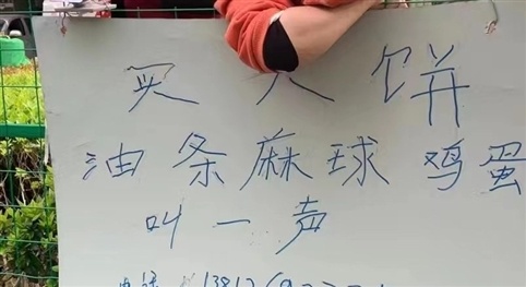前幾天,有位老顧客在鐵絲網(wǎng)外面喊了一句:“店里有人嗎?我要兩根油條、一杯豆?jié){。”崔健立刻應(yīng)了一聲,將油條和豆?jié){包好遞出去。這位老顧客說,非常愛吃崔健家的油條,會常來照顧生意。“不過你得把餐幫我送出鐵絲網(wǎng)。”顧客可能只是隨口一說,卻給了崔健很好的啟發(fā)。他在鐵絲網(wǎng)外貼了一張紙條,上面寫著:“買大餅、油條、麻球、雞蛋,叫一聲。”